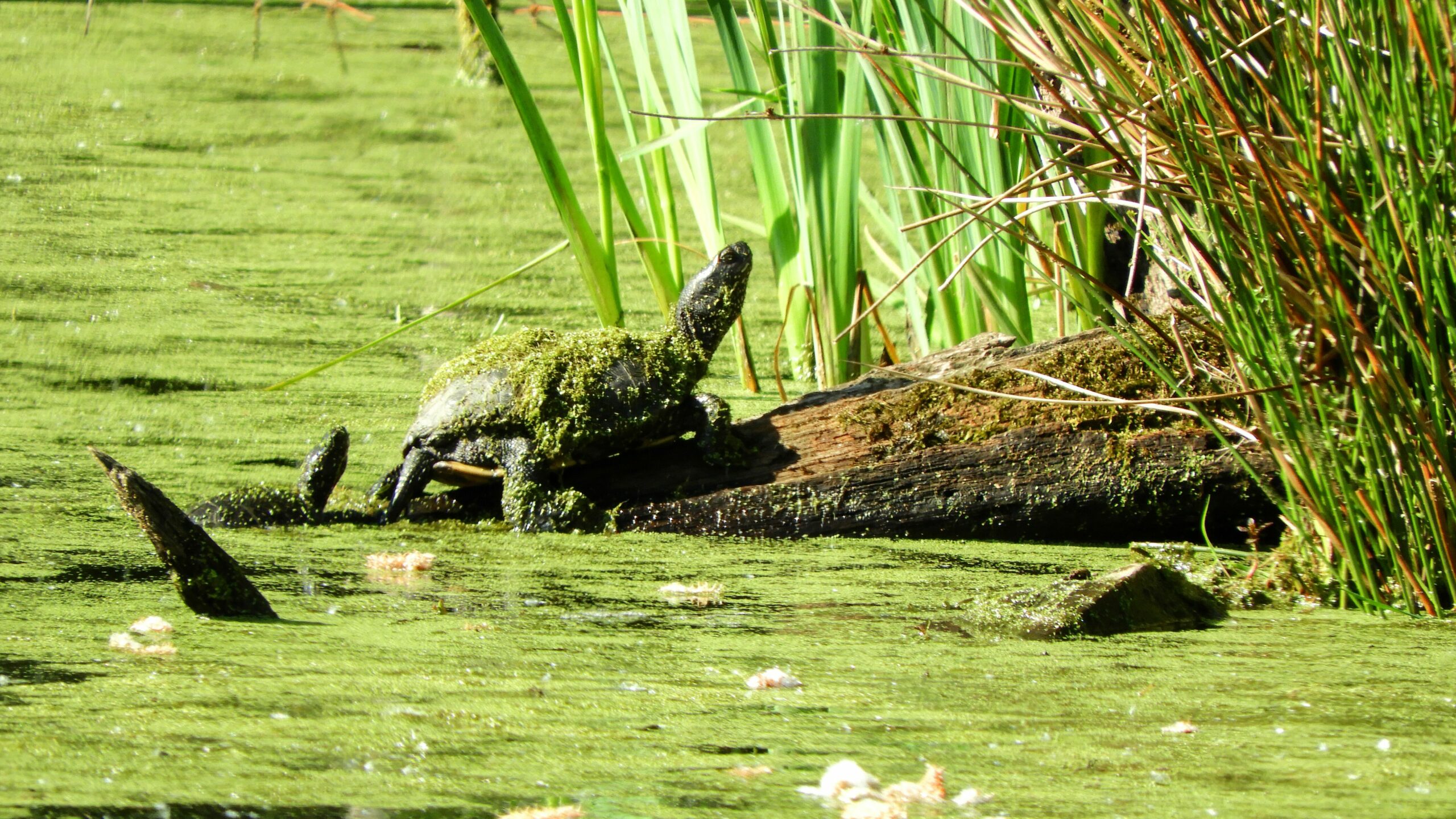 Cependant, les principaux dangers sont moins évidents à percevoir. Tout d’abord, la présence de pisciculture provoque l’eutrophisation du milieu de vie de nos petites tortues. Les excréments des poissons, riches en azote, servent d’engrais aux algues. Celles-ci se développent, envahissent le milieu et pompent tout l’oxygène de l’eau. Elles encrassent la carapace des Cistudes. L’exposition au soleil, essentielle à leur développement, devient moins efficace. Les tortues présentent un état général moins bon et donc un taux de reproduction plus faible.